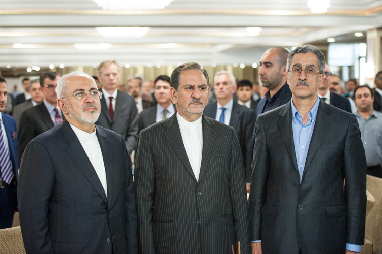First Vice President Es’haq Jahangiri and Foreign Minister Mohammad Javad Zarif, who attended the meeting as representatives of the government, weighed in on Iran’s capacity to attract foreign investment as well as on tactics to counter looming US sanctions against Iran.