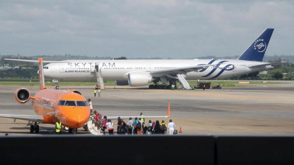 The Boeing 777 was heading to Charles de Gaulle airport in Paris from Mauritius when its pilots requested an emergency landing at 12:37 a.m. Sunday in the Kenyan city of Mombasa.