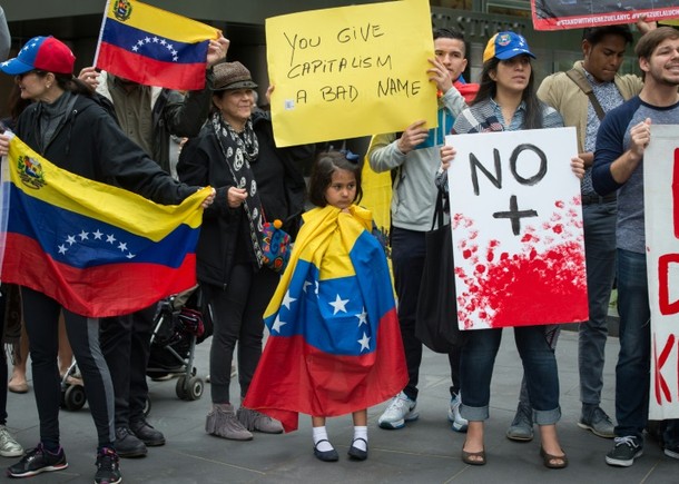 Waving Venezuelan flags, a small group of protesters outside the US banking giant’s headquarters in Manhattan shouted “Goldman Sachs Sucks!” AFP reported.