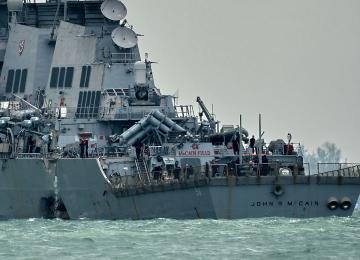 Vessels from several nations are searching Southeast Asian waters for 10 missing US sailors after an early morning collision Monday between the USS John S. McCain and an oil tanker ripped a…