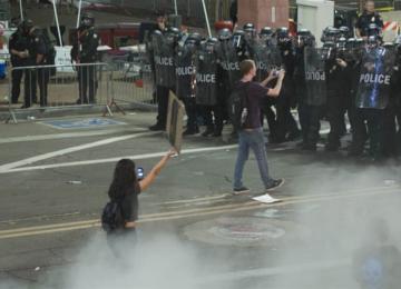 Police have fired tear gas and stun grenades at crowds of protesters in Phoenix, Arizona, as they demonstrated against US President Donald Trump, who held a campaign-style rally nearby for…